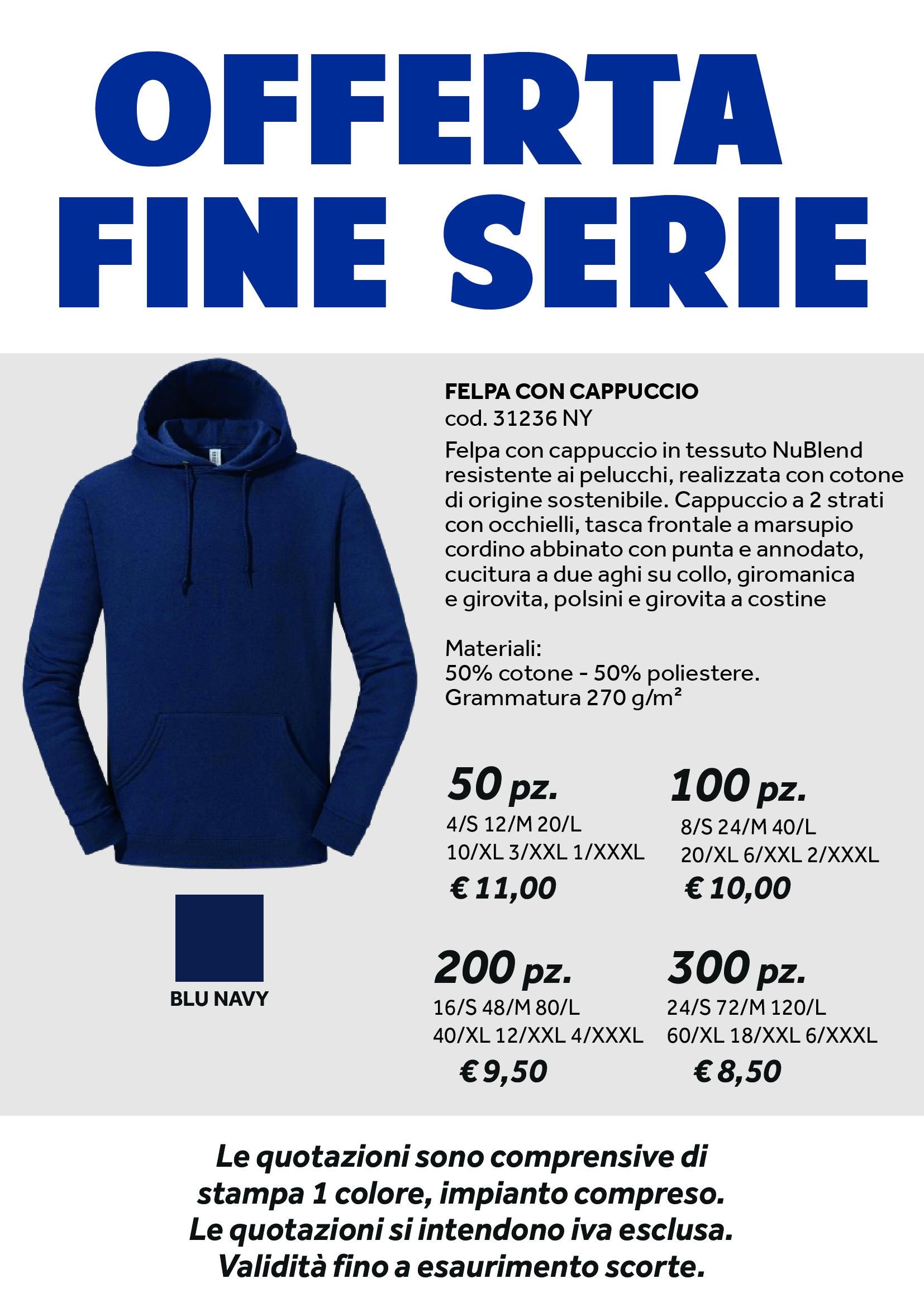 FELPA FULL ZIP CAPPUCCIO BLU NAVY