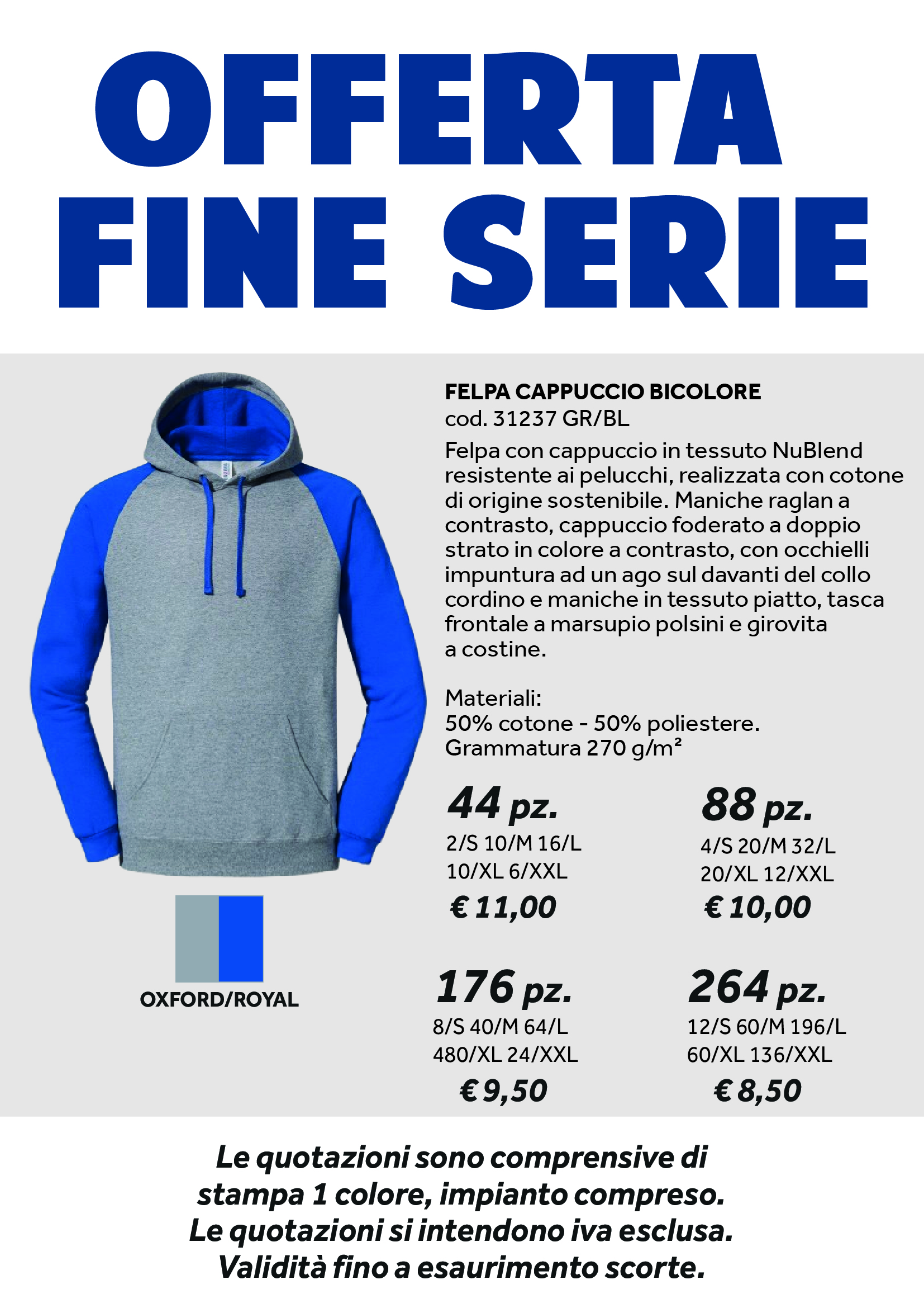 FELPA CAPPUCCIO BICOLORE GRIGIO E BLU