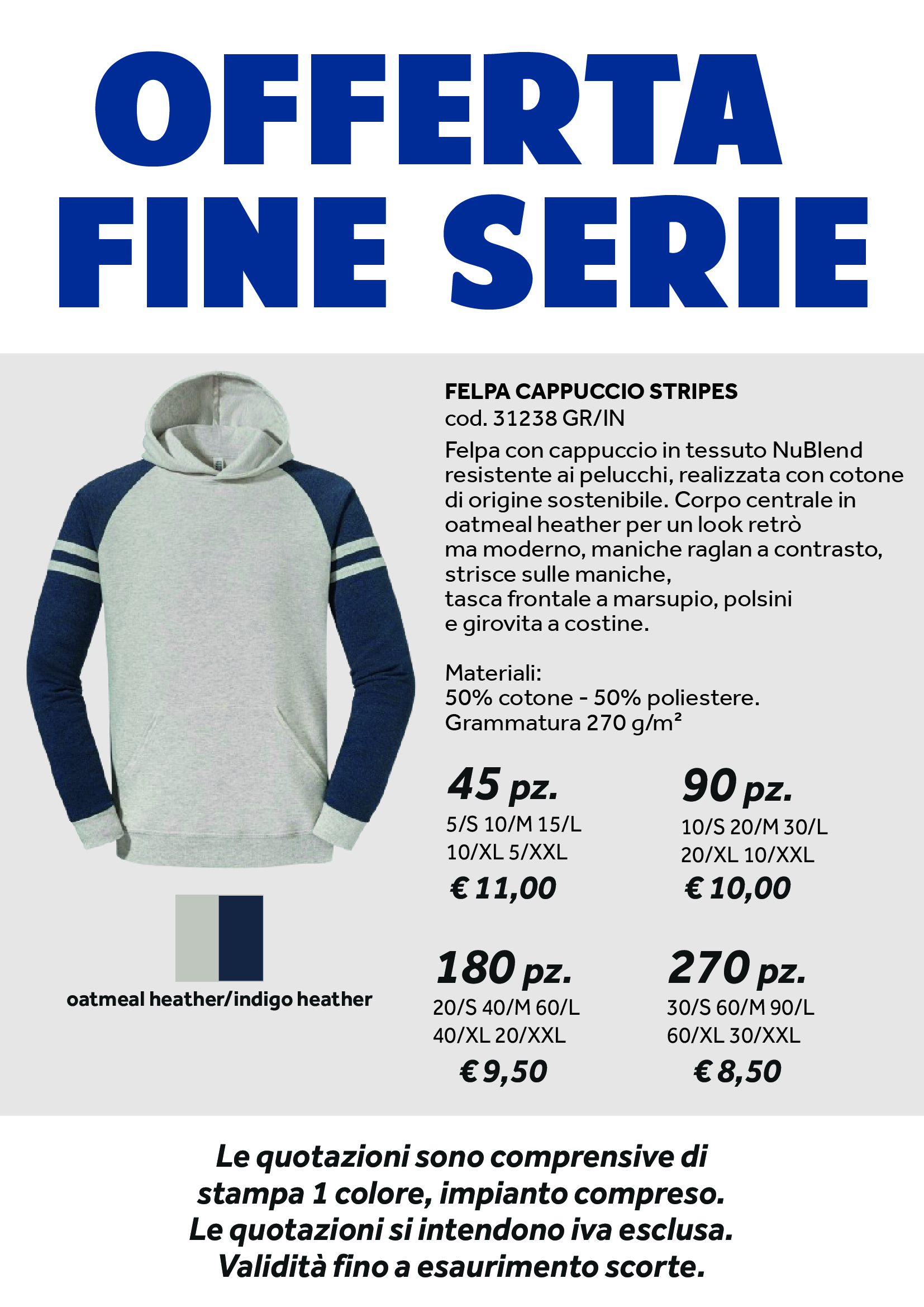 FELPA CAPPUCCIO STRIPES GRIGIO E INDIGO