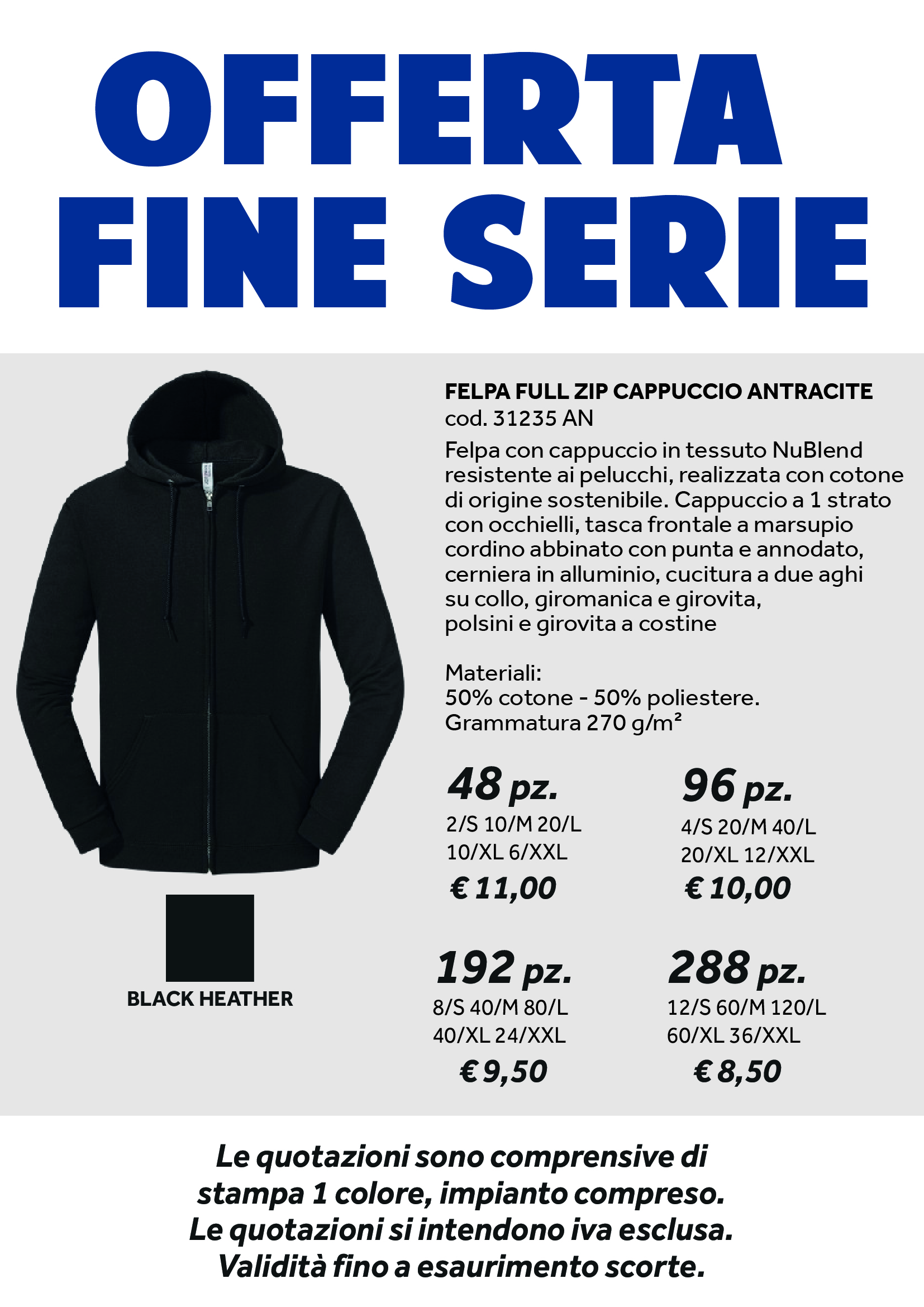 FELPA FULL ZIP CAPPUCCIO ANTRACITE