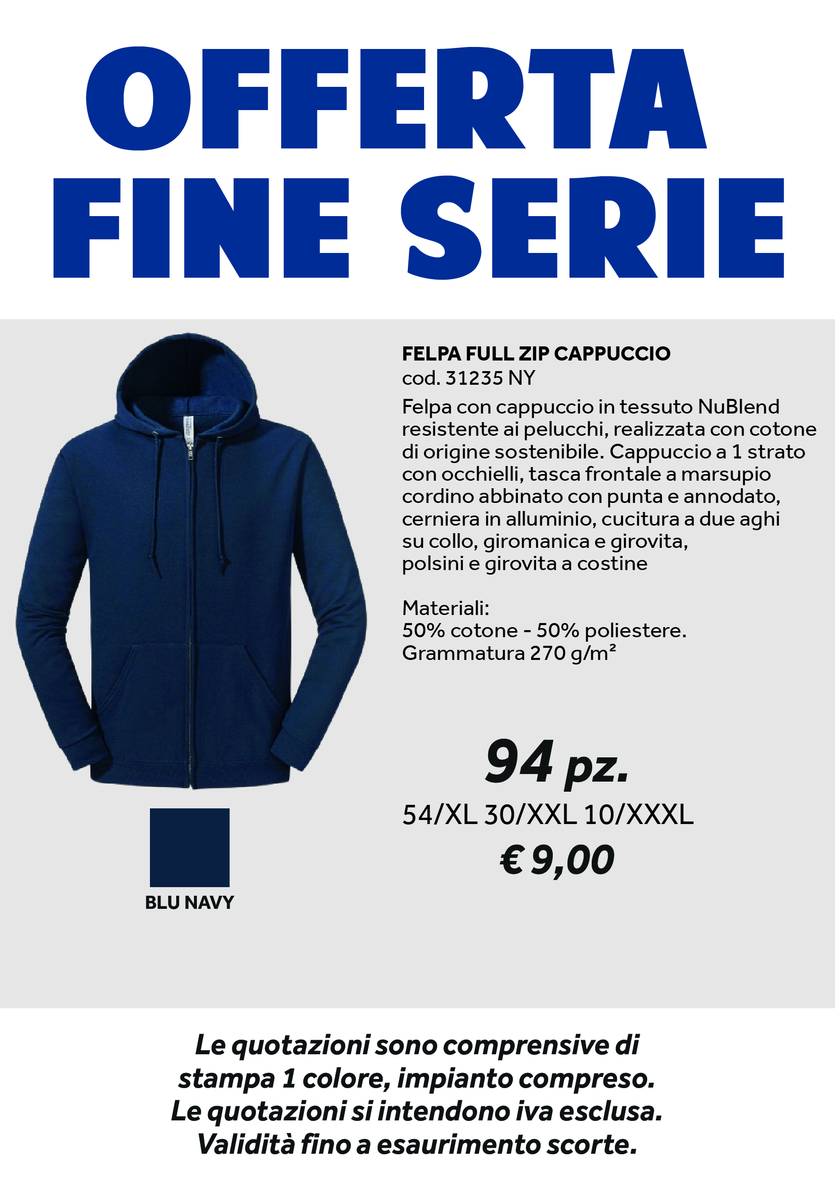 FELPA FULL ZIP CAPPUCCIO BLU NAVY