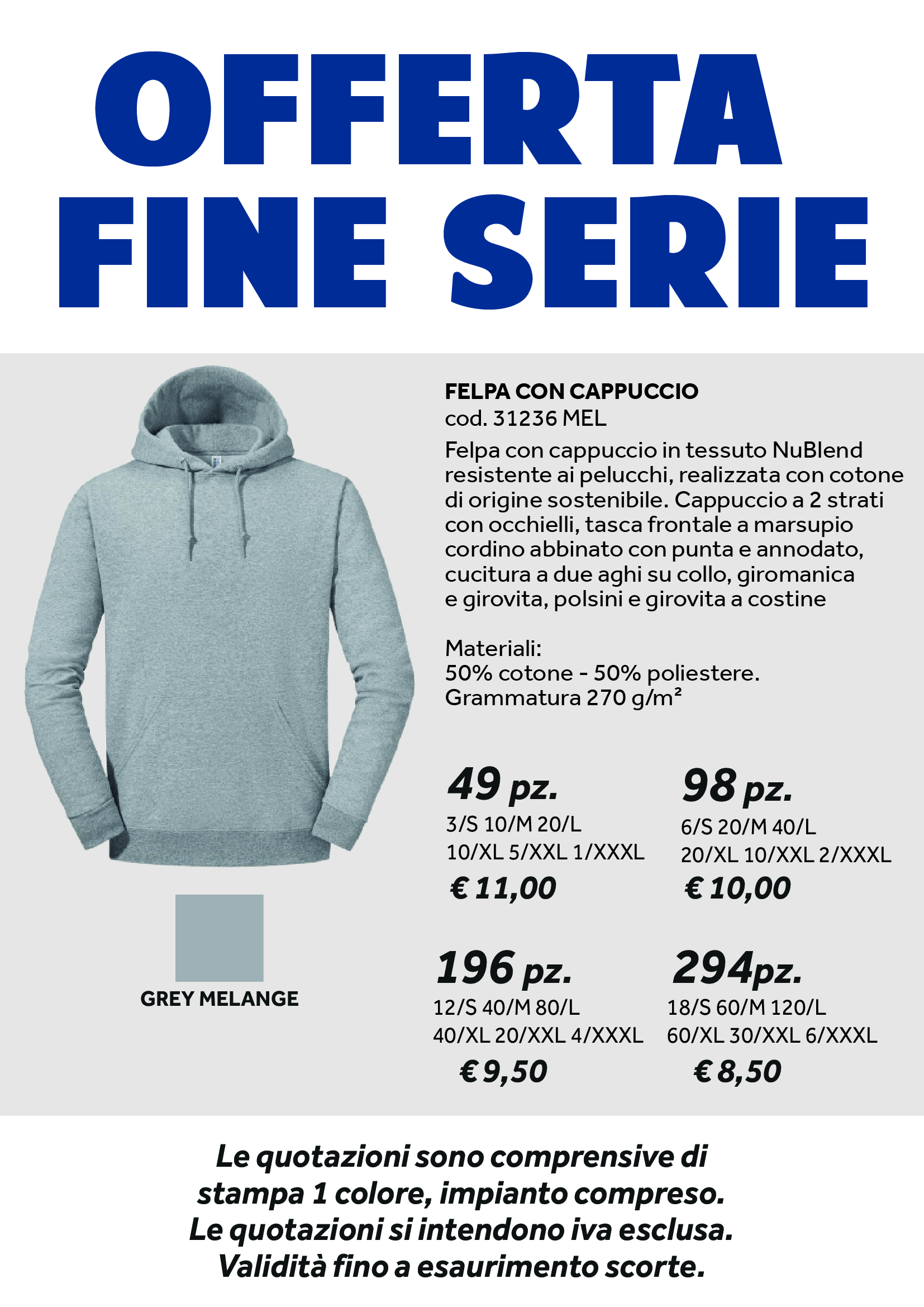 FELPA CAPPUCCIO BICOLORE GRIGIO E BLU
