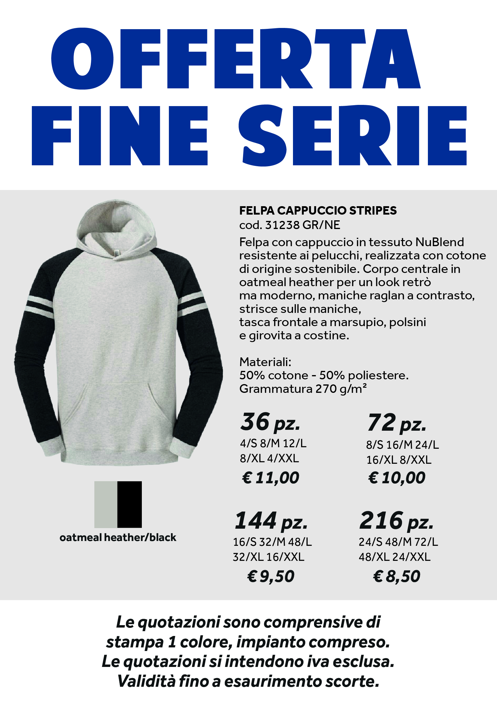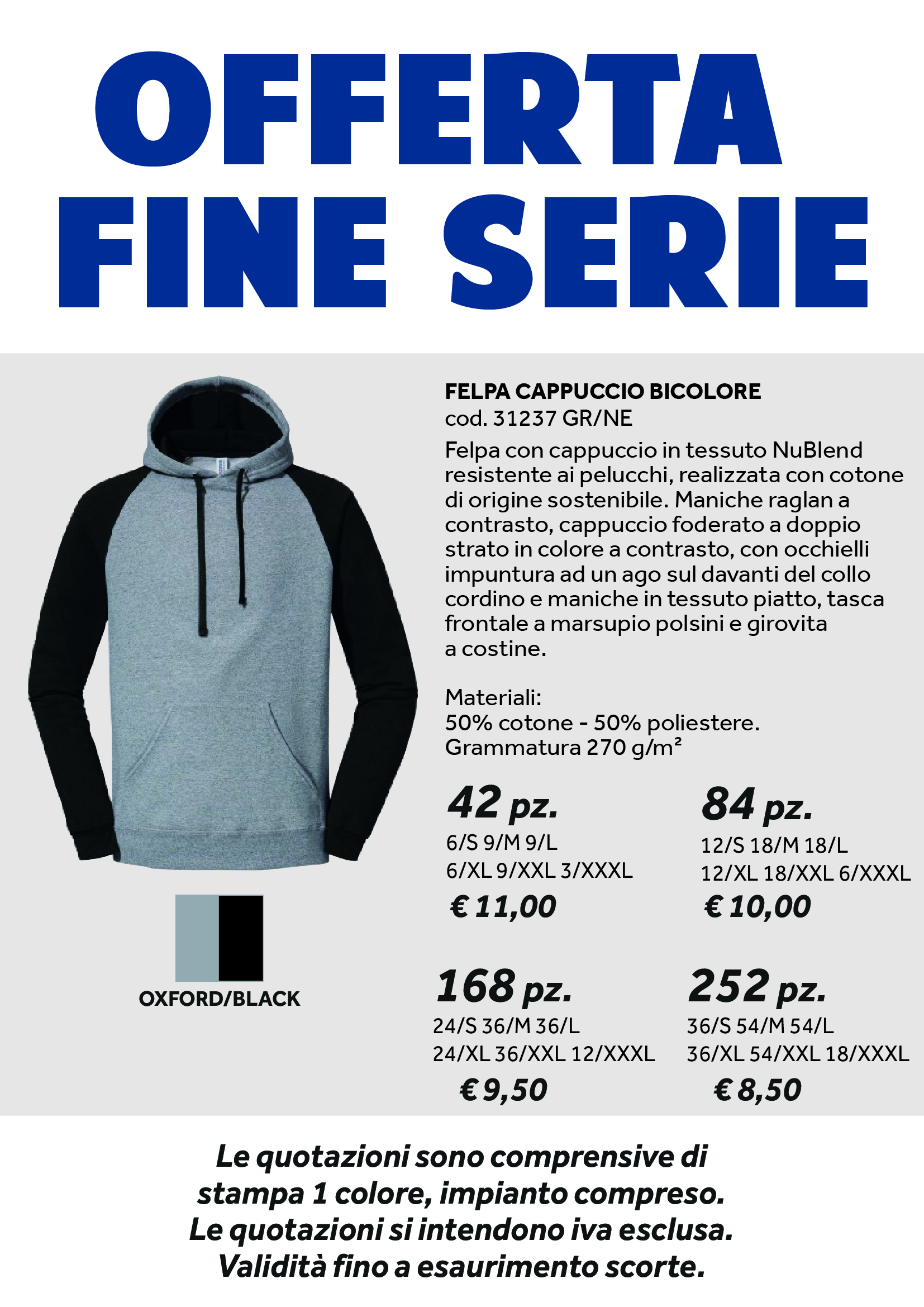 FELPA CAPPUCCIO BICOLORE GRIGIO E NERO