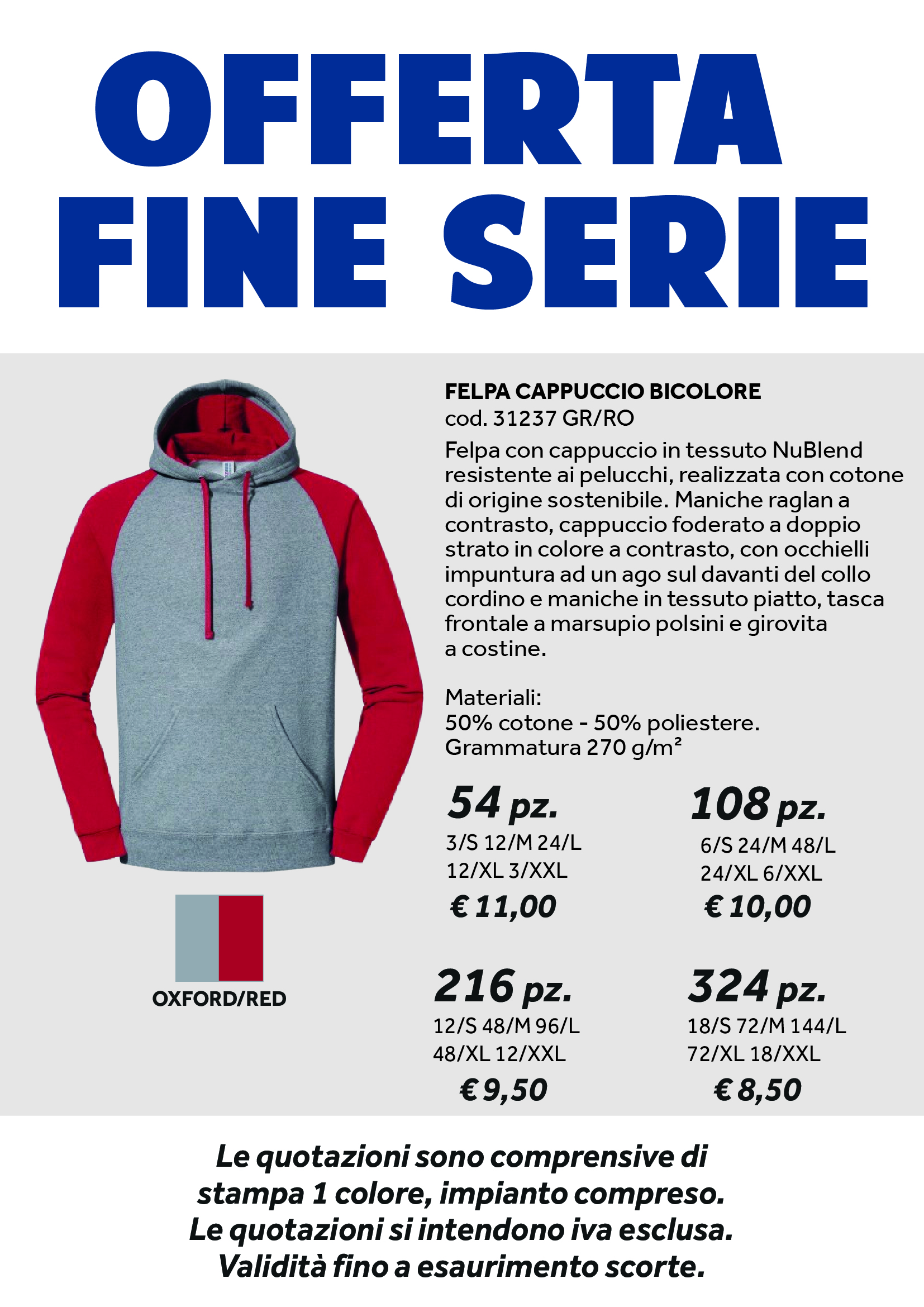 FELPA CAPPUCCIO BICOLORE GRIGIO E ROSSO